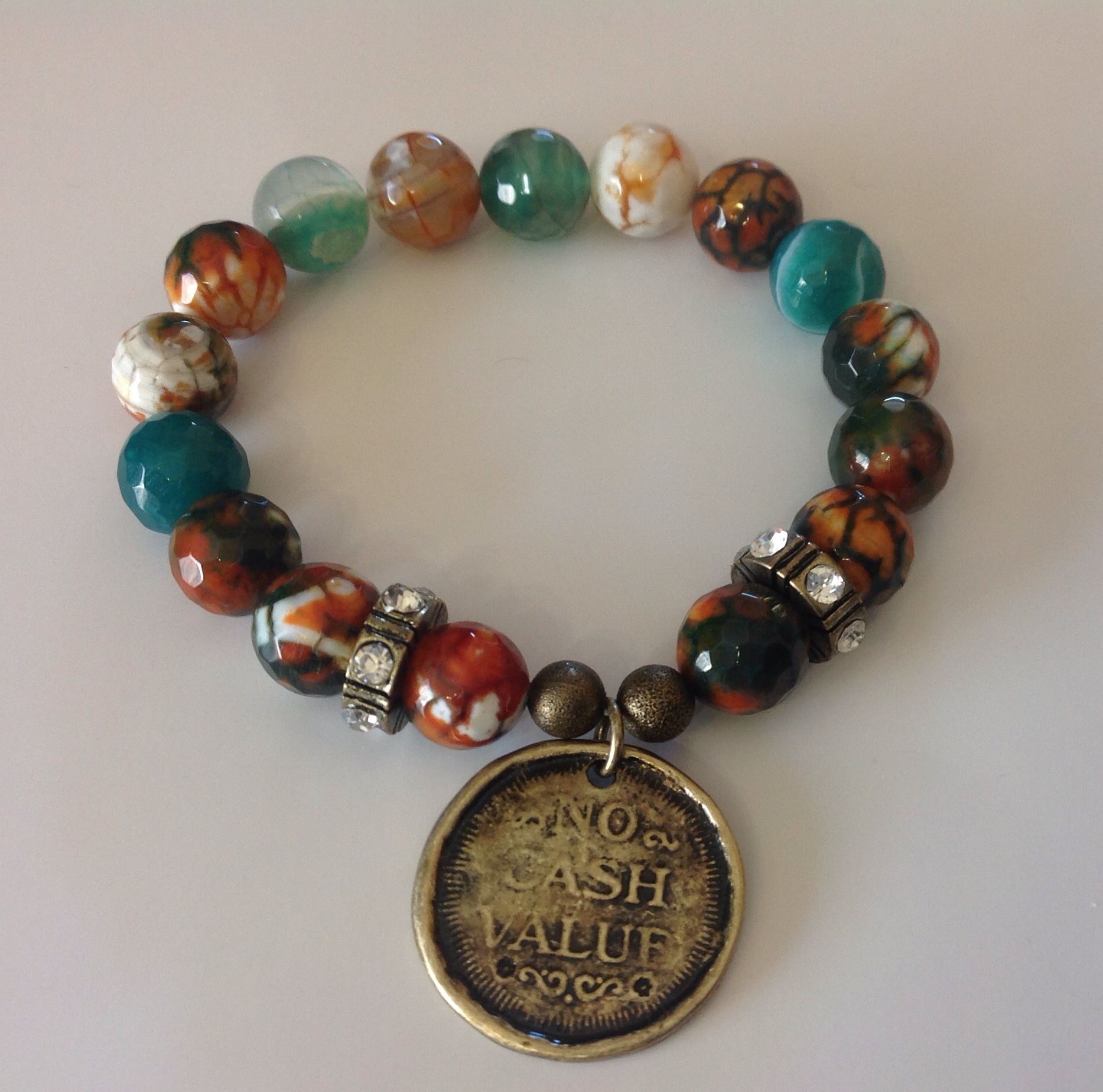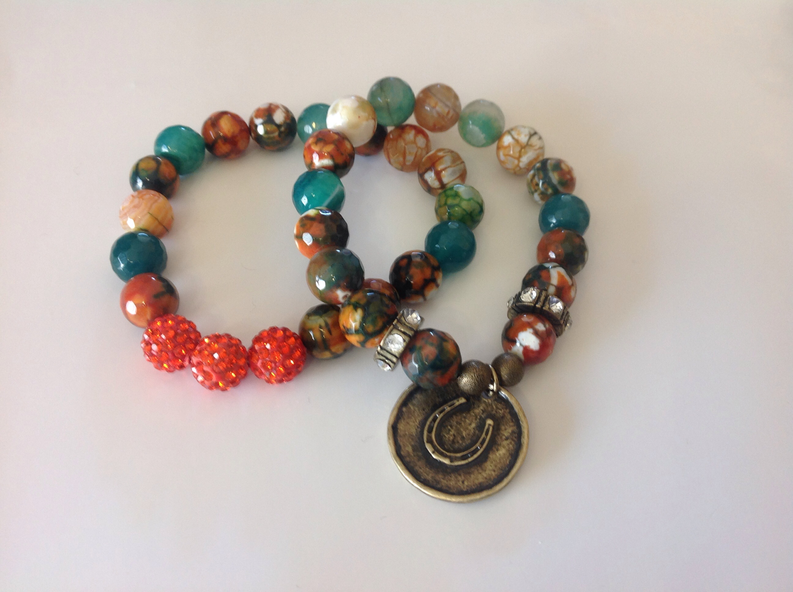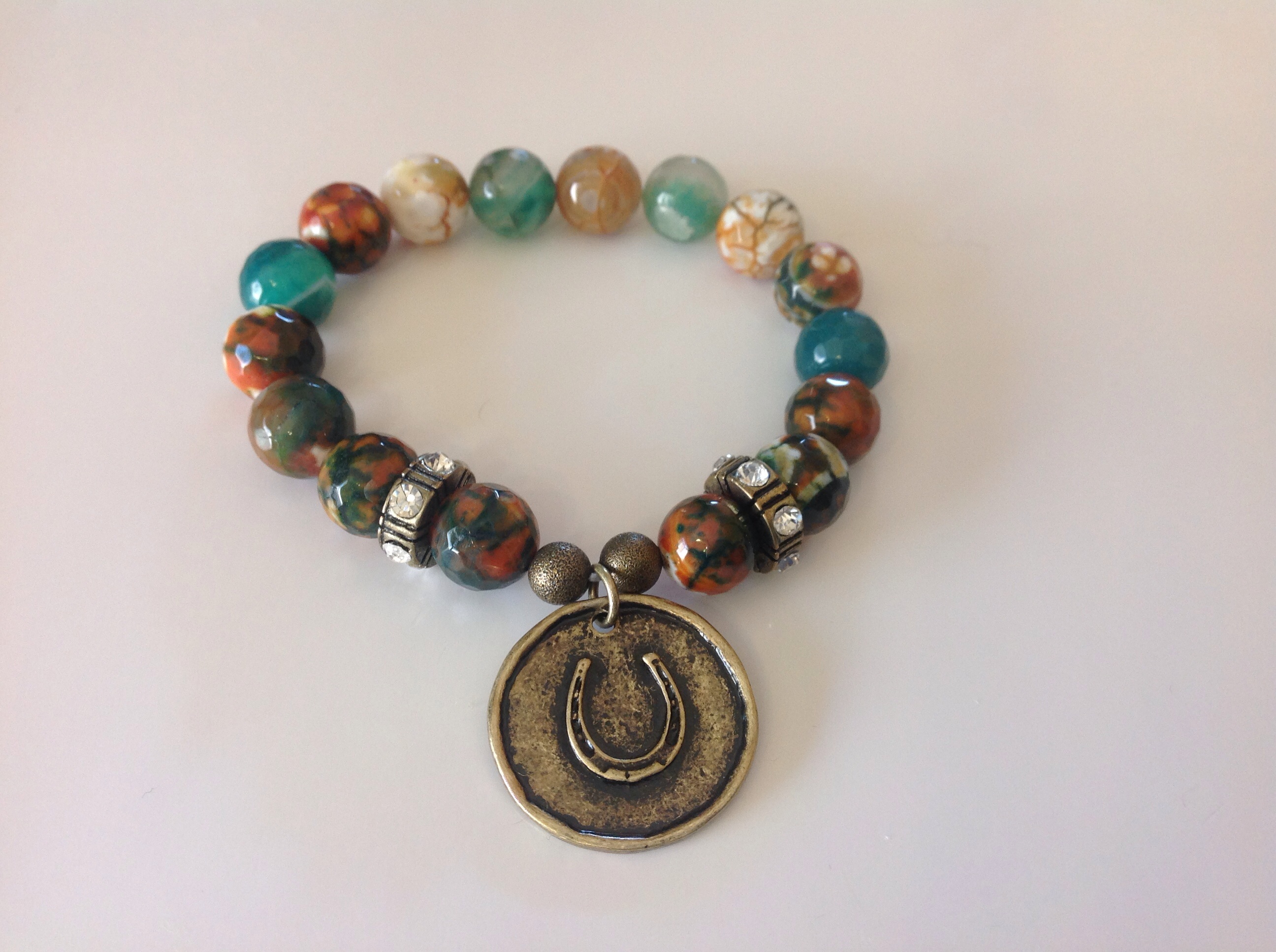 Auburn Green Agate Beaded Bracelet with horseshoe charm & Swarovski Crystals