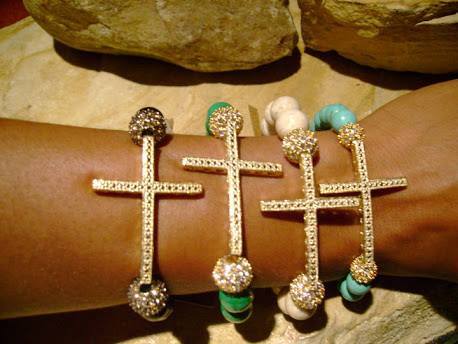 TURQUOISE ROUND BEADS, CRYSTAL CROSS, PAVE BEADS