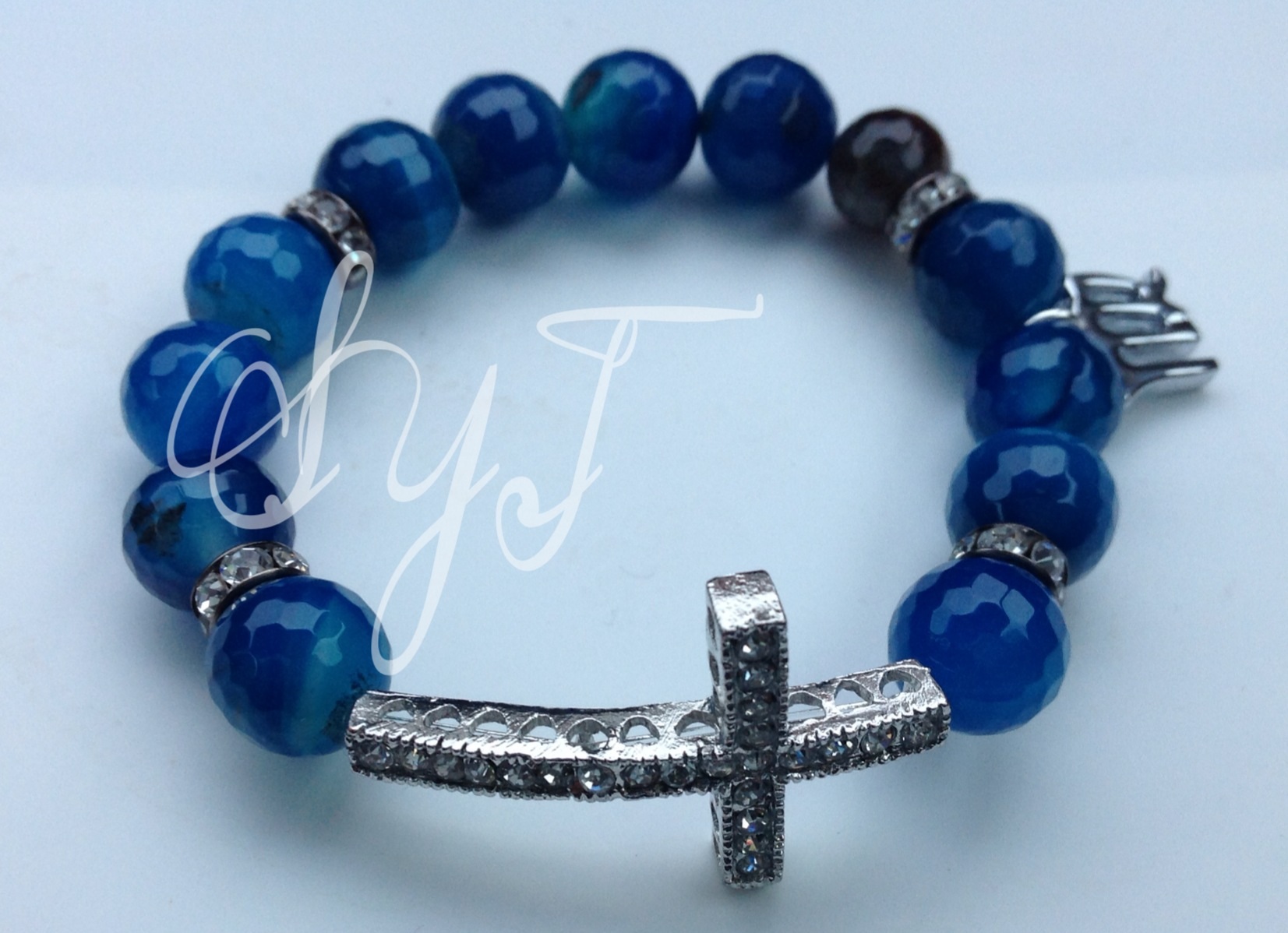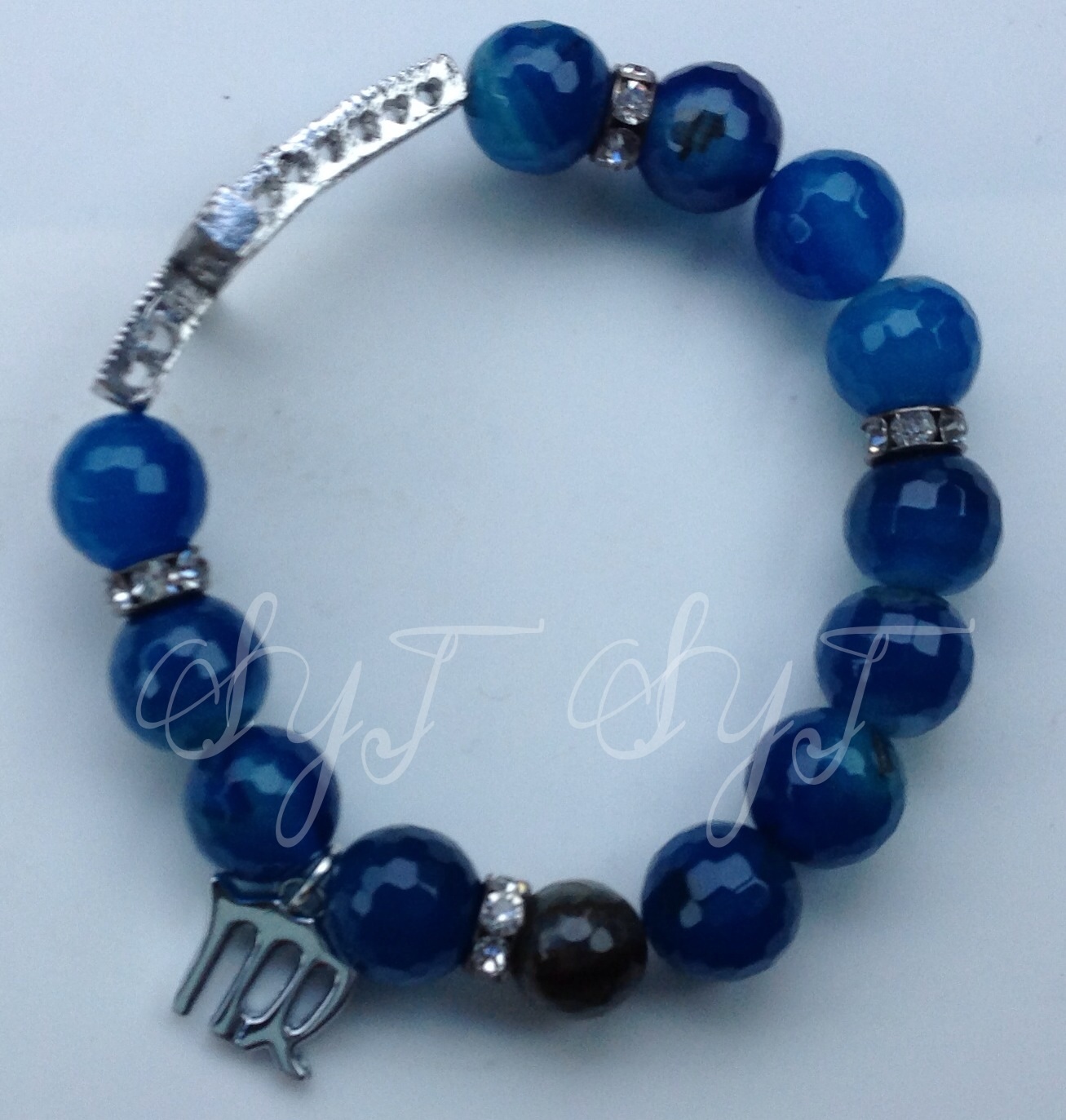 Sapphire Agate Faceted Round Beads, Zodiac Charm, Crystal Sideways Cross Connector, Crystal Spacers