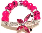 DARK PINK MIXED BEADS, CRYSTAL BUTTERFLY CONNECTOR, 2 - TONED PAVE BEAD