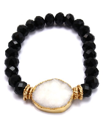 White DRUZY Stone and abacus faceted beads on stretchy bracelet